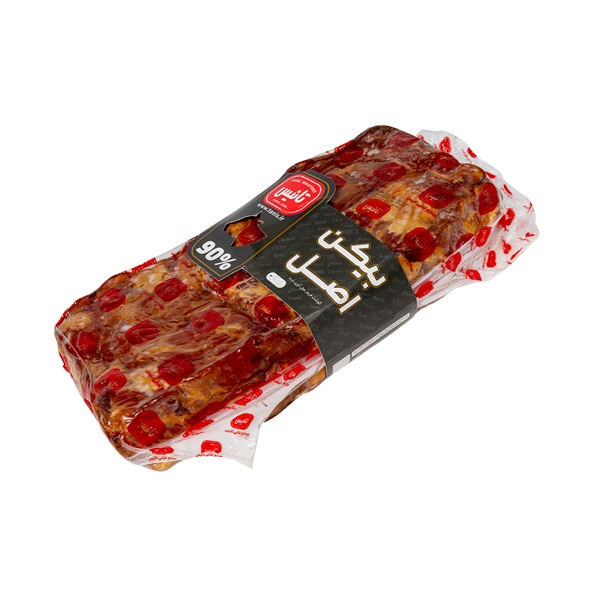 بیکن گوشت اصل چرب تانیس، طعم دودی و چرب را با کیفیت صنعتی ترکیب میکند.