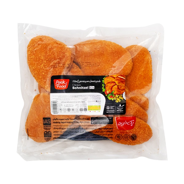 شنیسل مرغ پک فود از فیله مرغ بدون استخوان، آرد سوخاری، تخممرغ، ادویههای معطر و روغن گیاهی تهیه شده و بهصورت نیمهآماده منجمد عرضه میشود. بستهبندی ۲ کیلویی آن شامل حدود ۲۰ تا ۲۵ عدد شنیسل متوسط است که تنها با چند دقیقه سرخکردن در روغن یا استفاده از سرخکن بدون روغن آماده مصرف میشود.